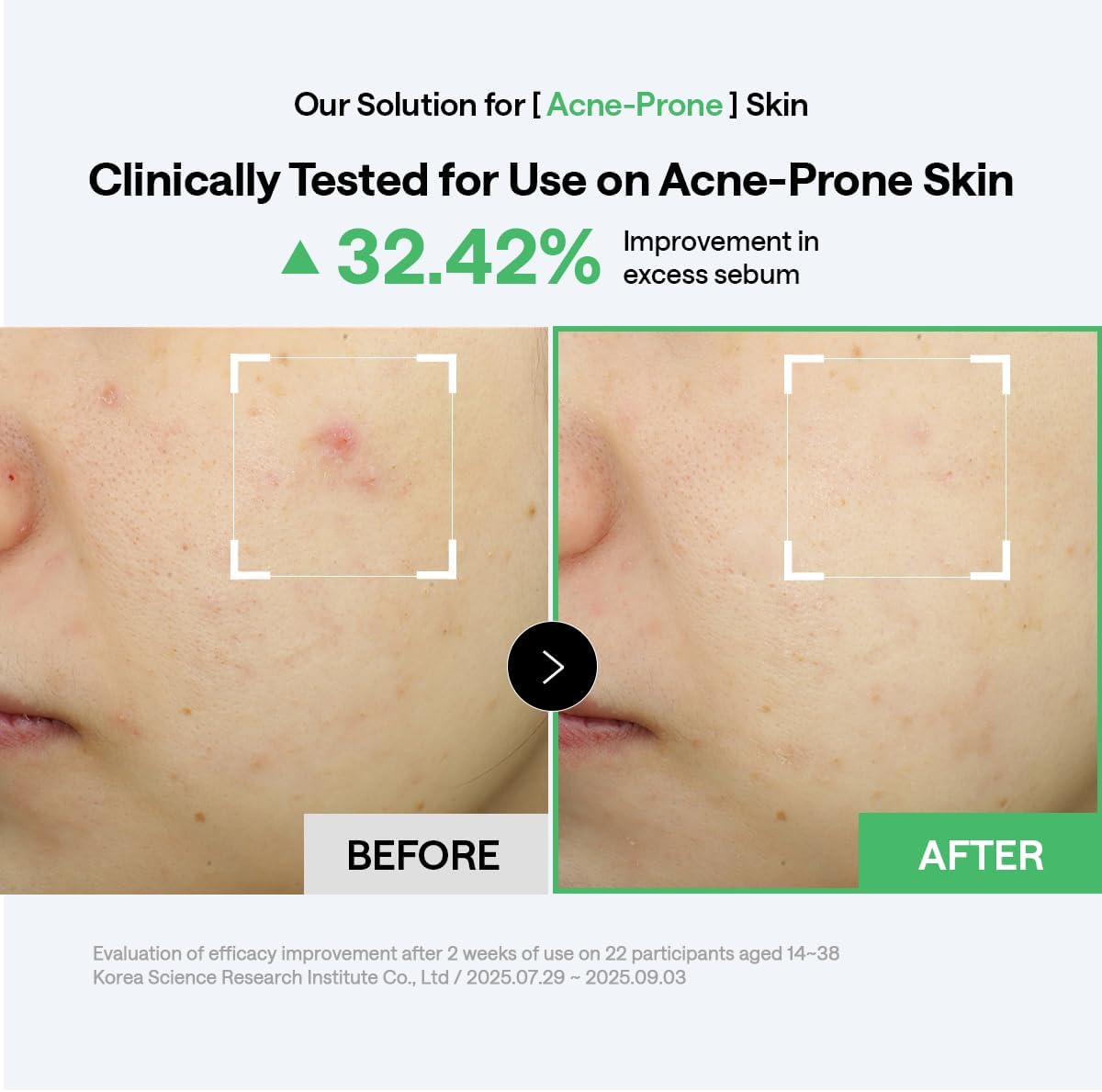 - After 4 weeks of use active sebaceous glands are reduced by 24%