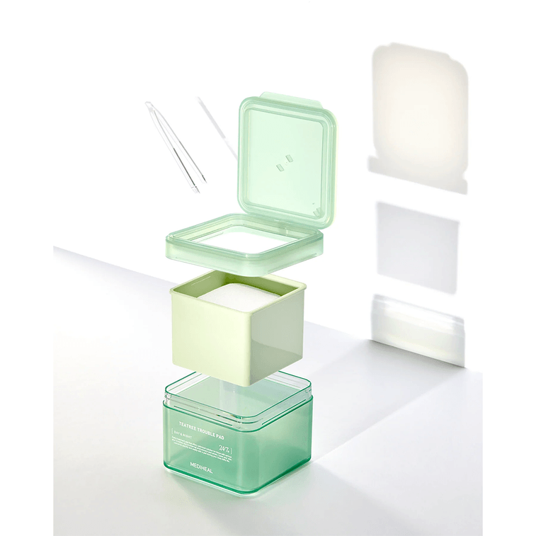 A gentle yet concentrated treatment to calm and balance blemish prone, troubled skin. Formulated with Mediheal's TeatreePair complex and liposome delivery system for optimal results. Included with long skinny tweezers to grab pads one by one ensuring that the formula stays clean and dirt-free. This toner pad can be used as a wipe-to-tone and wear-to-treat. To treat desired areas, simply place a pad and leave for 10~20 minutes.