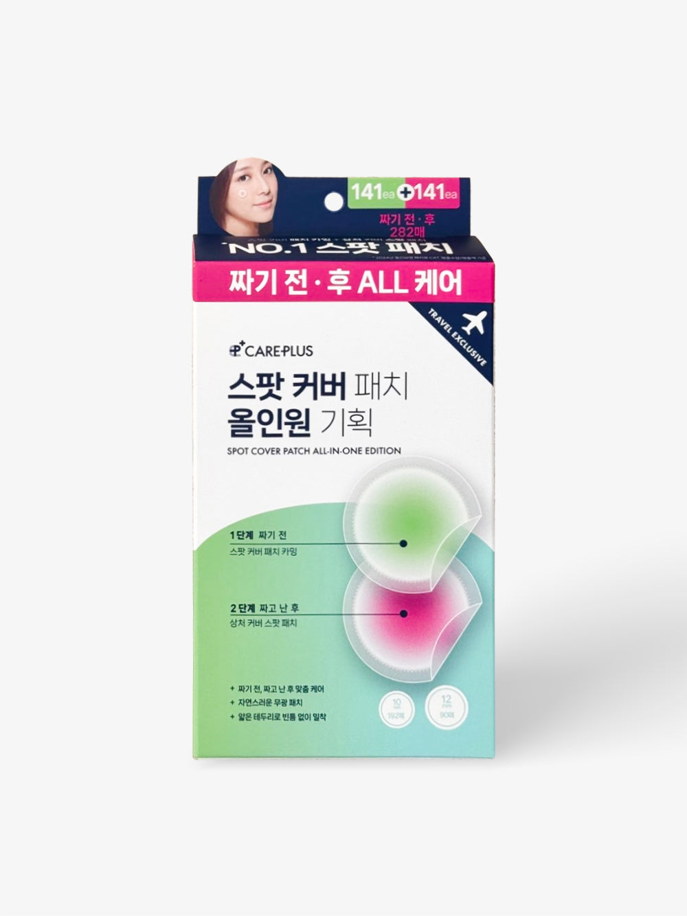 CAREPLUS' Spot Cover Patch All-in-One Edition brings together two targeted solutions in one convenient set for complete blemish care at every stage. This special edition includes both the Scar Cover Spot Patch and the Spot Cover Patch Calming, so you can treat early breakouts and protect post-blemish skin with the right patch at the right time.