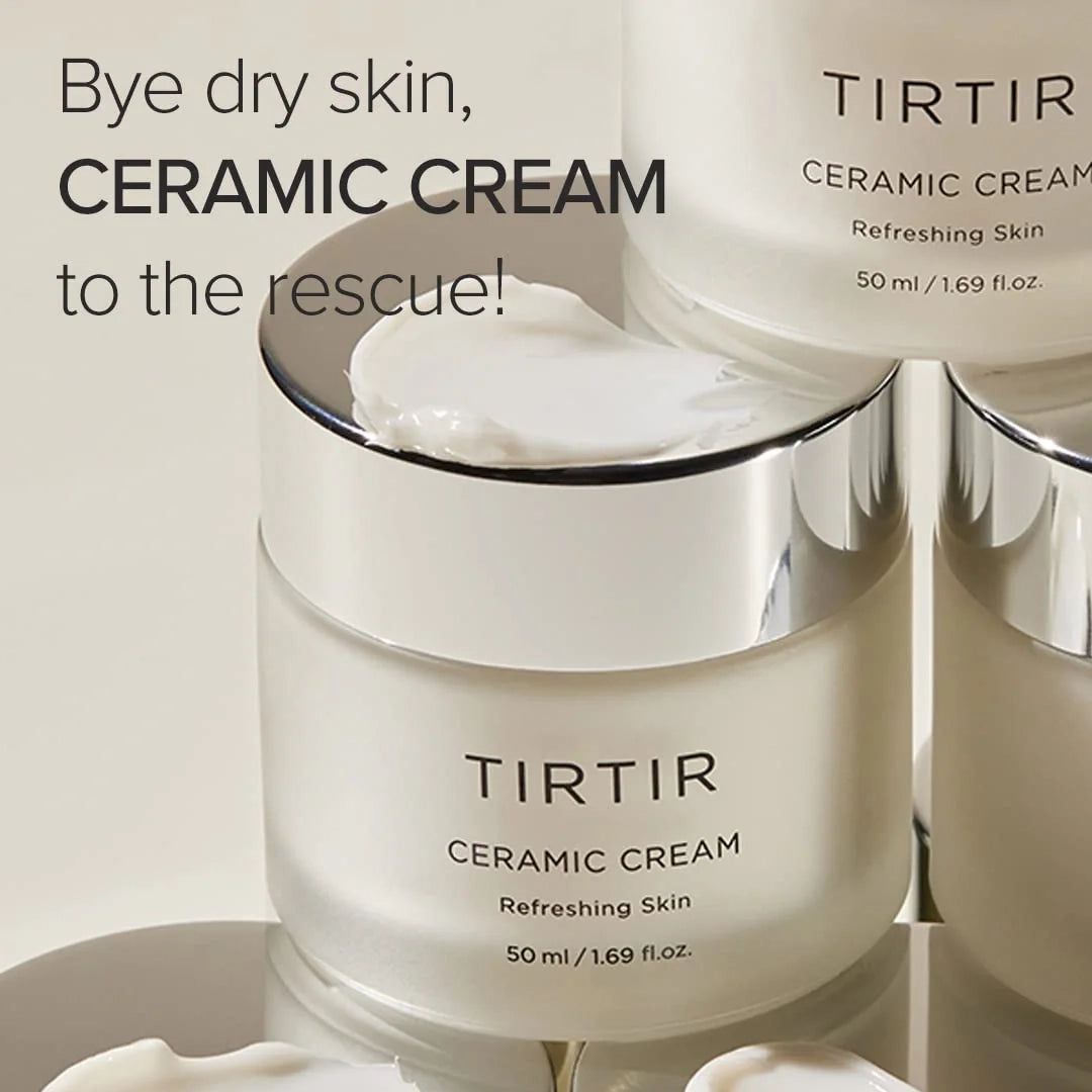The TIRTIR Ceramic Milk Skin Trio Light features a complete set of skin essentials: the Milk Skin Toner Light, the SOS Serum, and the Ceramic Cream.