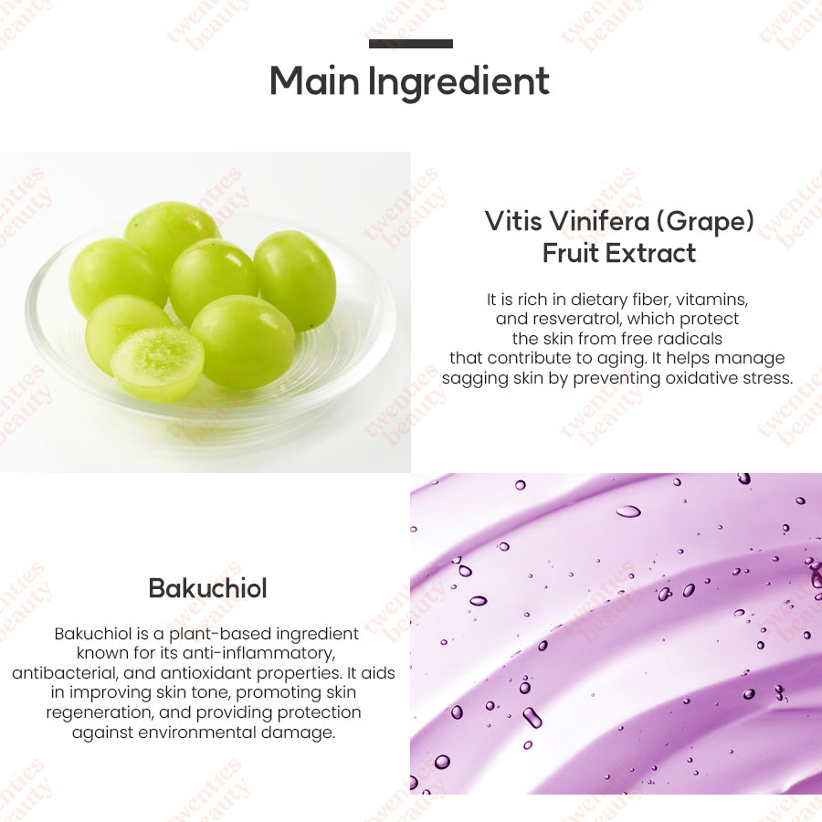 Miraclair’s Shine Bakuchiol Serum Mask is enriched with grape fruit extract, which is packed with vitamins and resveratrol. This mask shields your skin from free radicals and oxidative stress while managing sagging skin. Bakuchiol, a plant-based alternative to retinol, offers anti-inflammatory, antibacterial, and antioxidant benefits to enhance skin tone, promote regeneration, and protect against environmental damage. Adenosine boosts skin elasticity for a firmer appearance. This vegan formula features a high-quality sheet that adheres perfectly to deliver nourishing ingredients effectively.