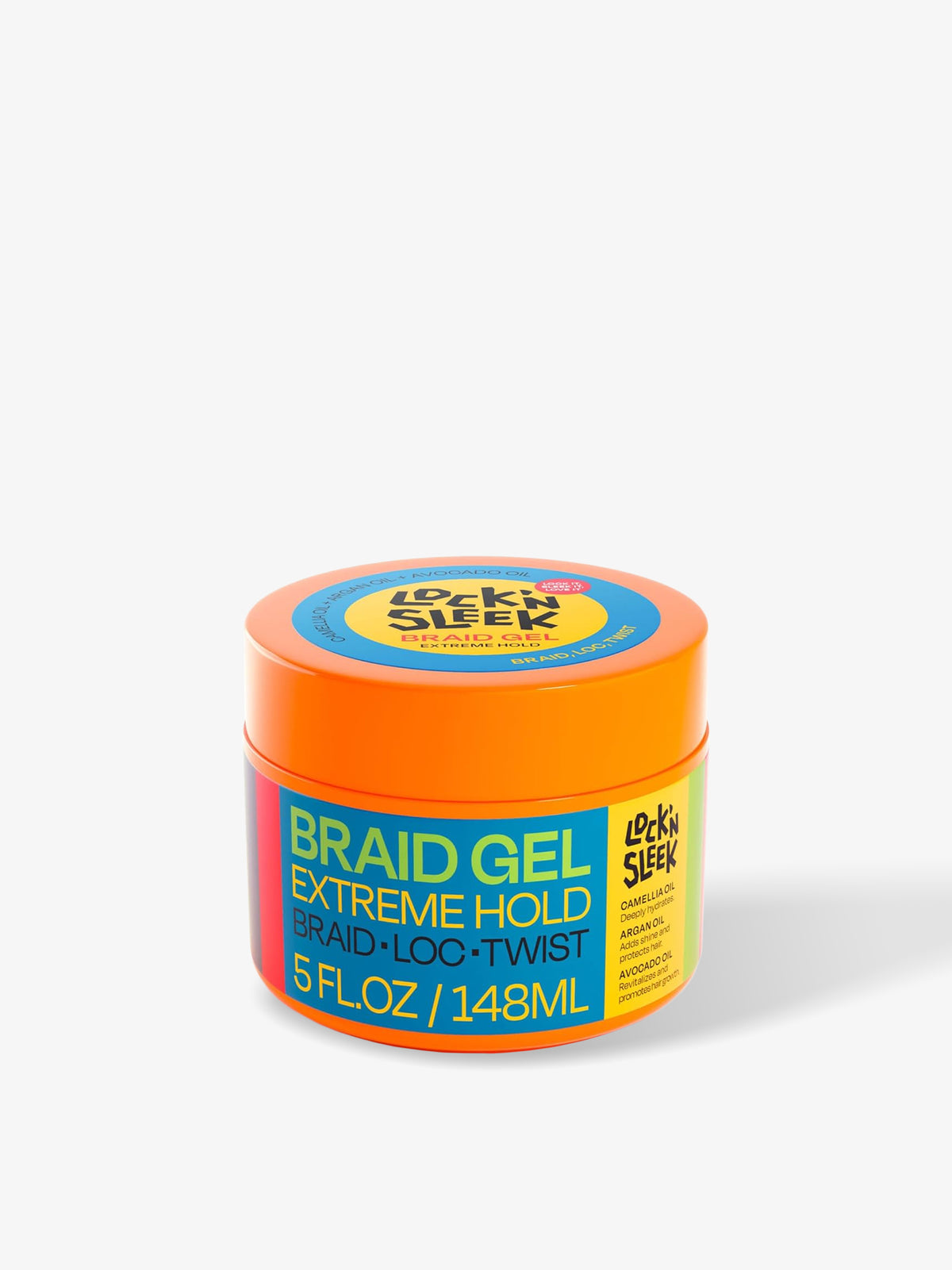 Unlock the power of extreme hold with the LOCK'N SLEEK Braid Gel, your go-to styling gel for braids, locs, and twists. This gel offers a firm, long-lasting hold without the flaking, this versatile gel keeps your styles in place all day, so you can rock any look with confidence. Provides a sleek, clean finish with no white residue, while the nourishing blend of argan and camellia oils adds a radiant shine to your braids. Say goodbye to frizz and flyaways as this gel tames unruly hairs for smooth, polished styles that stay sleek from start to finish. Formulated with coconut and avocado oils for deep nourishment, plus panthenol and menthol for scalp comfort, this gel soothes itching and promotes a healthy scalp throughout the day. This Braid Gel is naturally formulated, free from parabens, sulfates, alcohol, mineral oil, and petroleum, giving you a clean, healthy hold with vegan ingredients you can trust.