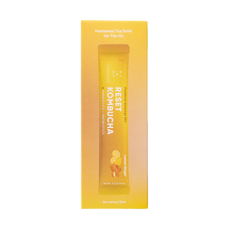 Transform your wellness routine with EVERYDAZE Reset Kombucha Powdered Beverage, a sophisticated take on the traditionally pungent kombucha drink. Kombucha, a fermented tea known for its gut health benefits, often comes with an overpowering, sour taste due to its fermentation process involving SCOBY (symbiotic colony of bacteria and yeast). This process converts sugar into ethanol alcohol and then into vinegar, resulting in an unpleasant aroma and tangy flavor. EVERYDAZE has revolutionized kombucha by turning it into a flavorful, fruity powder that eliminates the need for excessive sugar while preserving the drink's health benefits.