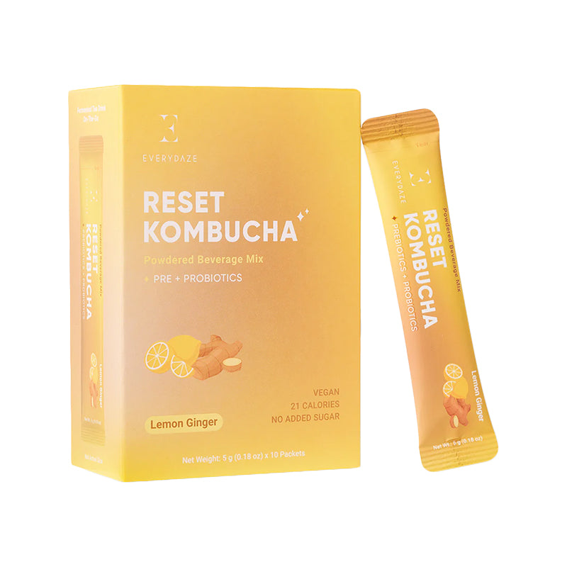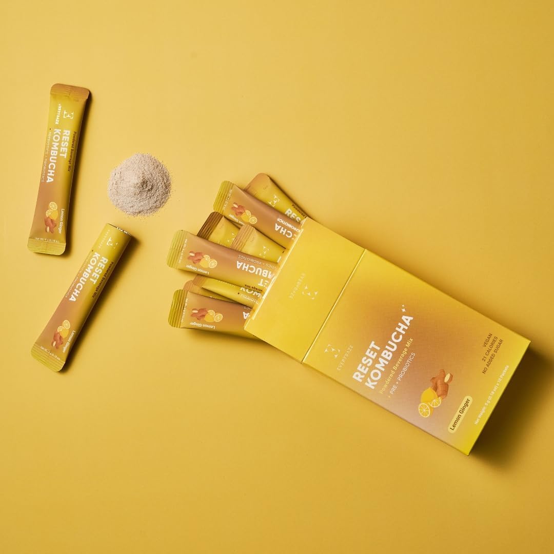 Reset Kombucha Powdered Beverage Mix Lemon Ginger 10 Sticks