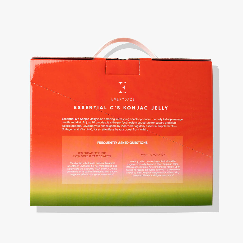 Elevate your snack time to a rejuvenating self-care experience with Essential C's Konjac Jelly. Each full pouch of Essential C's Konjac Jelly contains a mere 10 calories and delivers your essential dose of Collagen and Vitamin C. Collagen works wonders by enhancing skin elasticity and providing support for joints and muscles, while Vitamin C optimizes your immune system and promotes a bright, healthy complexion. The invigorating fruity taste and satisfyingly chewy texture make it a delightful treat for both adults and children. Its convenient travel-friendly packaging ensures that you can enjoy it wherever life takes you, making it a go-to healthy snack for any occasion.
