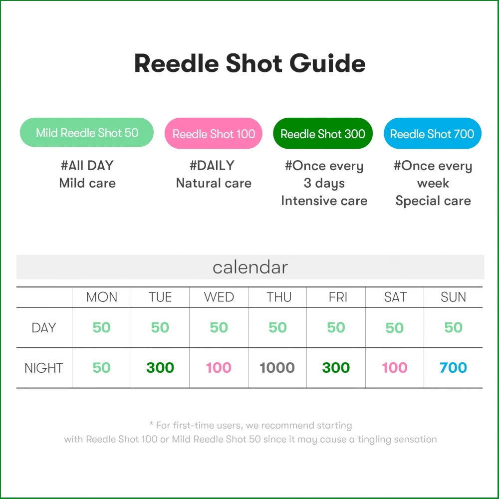 *Mild Reedle Shot 50 can be used together with products of different content, but do not use Reedle Shot 100/300/700/1000 at the same time.