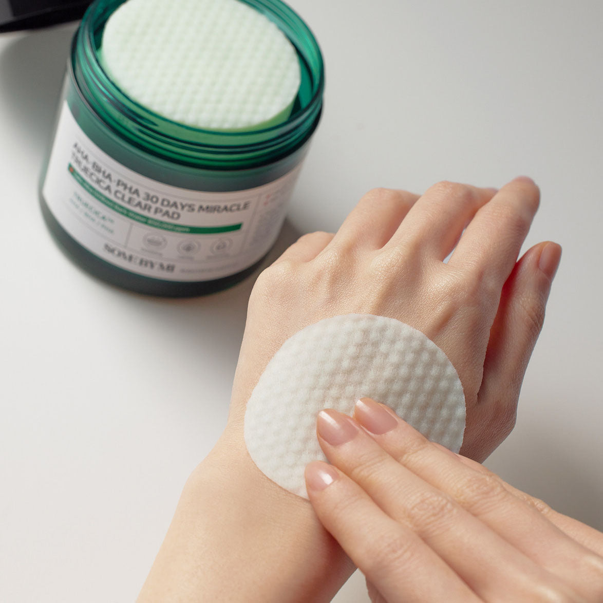 Diseñadas como discos bidireccionales, no solo limpian las impurezas, sino que también funcionan como mascarilla calmante. Déjalas actuar de 10 a 15 minutos donde tu piel necesite un cuidado extra. Las almohadillas Truecica Clear Pads están dermatológicamente probadas y libres de 20 tipos de ingredientes artificiales, lo que las convierte en una opción confiable para el uso diario. Estas suaves almohadillas están enriquecidas con esencia de cica altamente concentrada, que trata eficazmente la piel con problemas sin irritación. Son excelentes para eliminar el sebo, las células muertas de la piel y las impurezas, permitiendo que la piel problemática mejore sin molestias. Con extracto de hoja de árbol de té, la línea Miracle combina AHA, BHA y PHA para refinar eficazmente las células muertas de la piel y eliminar las impurezas.