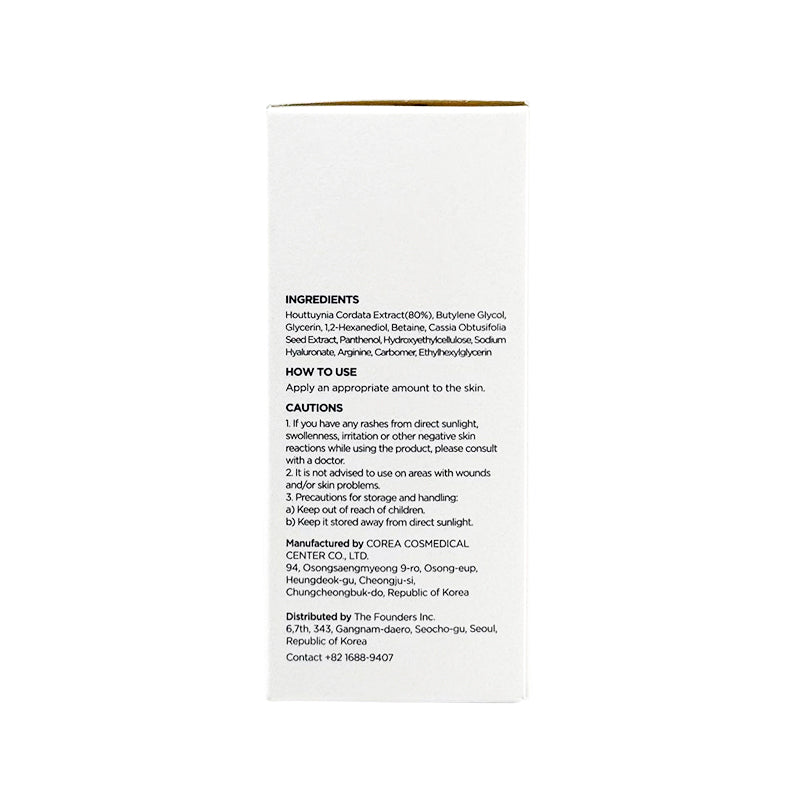 Extracto de Houttuynia Cordata, butilenglicol, glicerina, 1,2-hexanodiol, betaína, extracto de semilla de Cassia Obtusifolia, pantenol, hidroxietilcelulosa, hialuronato de sodio, arginina, carbómero, etilhexilglicerina.