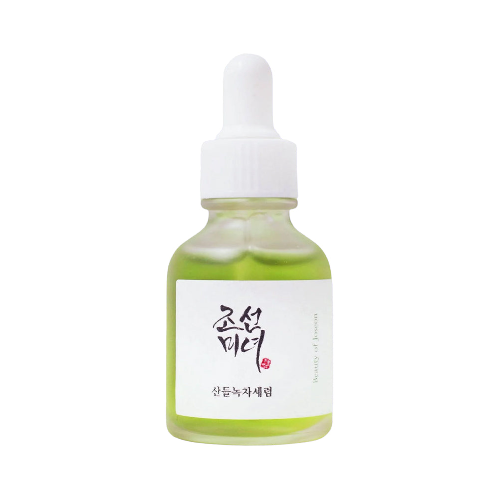 El Sérum Calmante está formulado con dos ingredientes principales: té verde y artemisa. El té verde es conocido por ser un excelente antioxidante y la artemisa por calmar la piel. Además, incluye pantenol que actúa como barrera de hidratación y protege la piel. Este sérum fue creado para ayudar a aliviar la irritación causada por los rayos UV y otros daños.