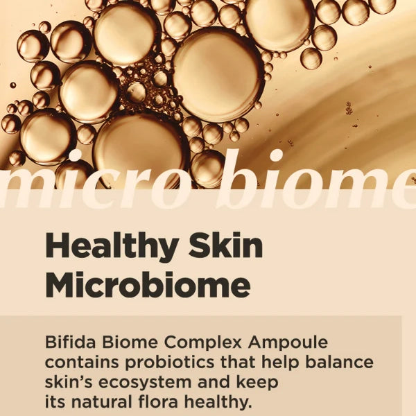 La ampolla Bifida Biome Complex de Ma:nyo Factory revitaliza y equilibra la piel, promoviendo una tez de aspecto más juvenil. Su fórmula altamente concentrada revitaliza la piel sensible, dejándola radiante y fresca. Enriquecida con Bifida Biome™ patentado y cinco tipos de probióticos, esta ampolla ayuda a fortalecer el microbioma de la piel, fortaleciendo la barrera cutánea para defenderse de las agresiones externas, a la vez que retiene la hidratación. Actúa para refinar el tono y la textura, a la vez que ilumina la tez. Diez tipos de ácido hialurónico penetran en las diferentes capas de la piel, proporcionando una hidratación profunda que rellena y suaviza visiblemente. Con un pH de 7,40 ± 1,00, esta ampolla es vegana y libre de crueldad animal, formulada sin fragancias artificiales, colorantes, parabenos, sulfatos, productos animales, alcohol, aceites minerales, aceites esenciales ni silicona.