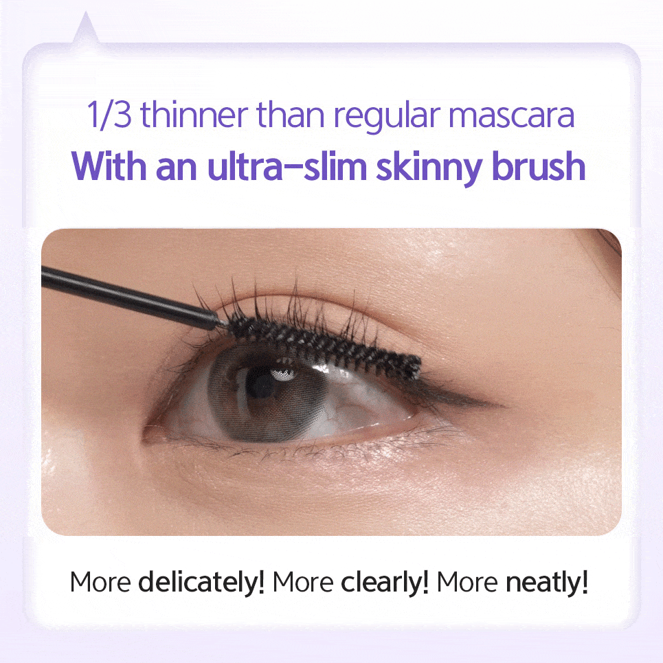 LalaChuu's Long Lash Skinny Mascara features a super slim wand that makes it easy to coat every lash, even the hard-to-reach bottom ones. The non-clumping formula separates and defines each lash, giving you natural length and lift that lasts all day. Formulated with gentle, nourishing ingredients like abyssinian kale seed oil, oat kernel oil, avocado fruit extract, and fleeceflower root extract to help protect and condition your lashes. The formula is also sweat and oil resistant, so it stays put without smudging or flaking. Perfect for sensitive eyes, this mascara delivers clean, precise results with a lightweight feel and lasting curl.