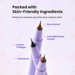El delineador de punta fina de LalaChuu es la versión mejorada del popular Art Brush Liner , diseñado para realzar tu delineador. Con un pincel ultrafino de 0,1 mm, permite líneas delicadas y precisas, ya sea que busques un look natural o un delineado audaz y dramático. Su fórmula de secado rápido y larga duración mantiene tu delineador intacto de la mañana a la noche, incluso en los climas más calurosos y húmedos. Sus propiedades a prueba de manchas y a prueba de agua aseguran que tu look se mantenga impecable durante todo el día. Fácil de quitar sin necesidad de limpiadores agresivos, este delineador es ideal para quienes tienen piel y ojos sensibles y usan delineador con regularidad. El resistente pincel de cerdas microfinas facilita la aplicación, perfecto tanto para principiantes como para profesionales del maquillaje. Disponible en dos tonos versátiles para complementar cualquier estilo.