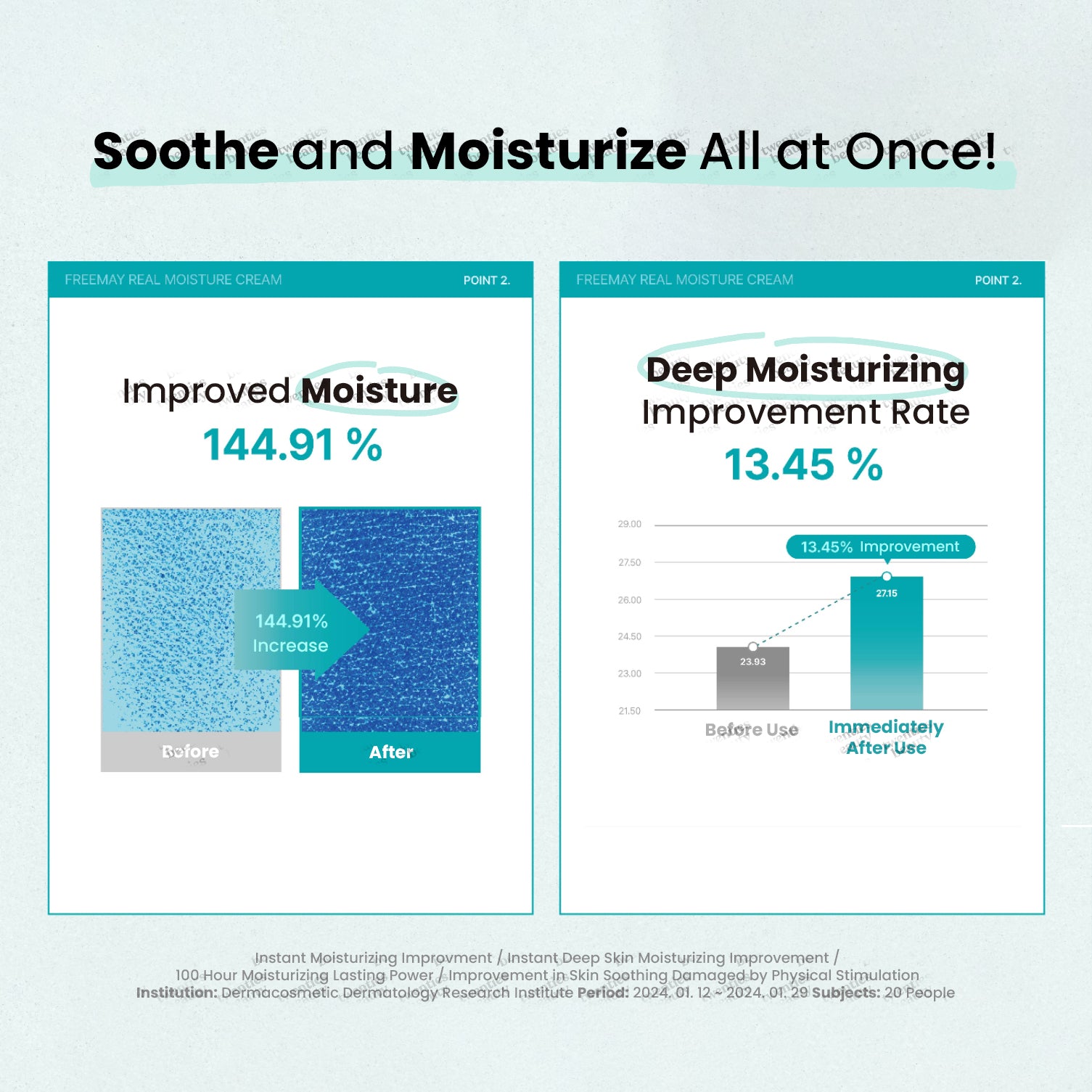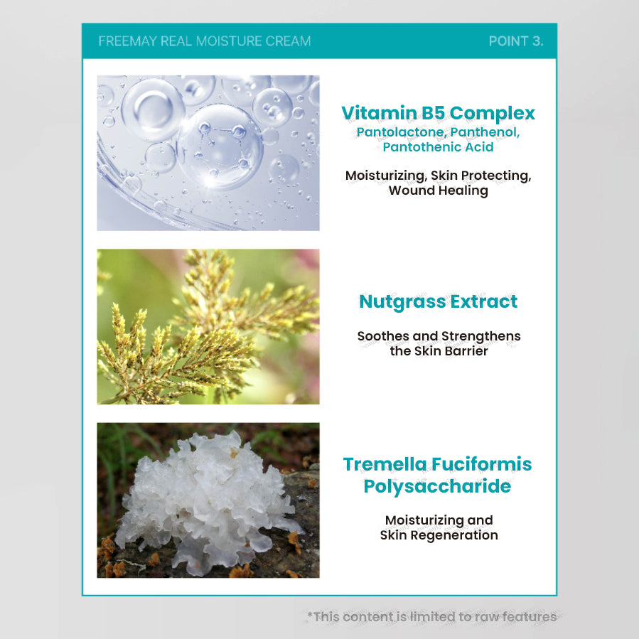 La Crema Hidratante Real de Freemay está enriquecida con un complejo de vitamina B5 que hidrata profundamente, protege la piel y promueve la cicatrización de heridas para una tez más saludable. El extracto de juncia calma la piel y fortalece su barrera natural, mientras que el polisacárido de tremella fuciformis mejora la retención de humedad y la regeneración cutánea. El extracto de bambú ofrece efectos calmantes adicionales y propiedades antioxidantes, asegurando que tu piel se mantenga calmada y protegida. Experimenta una hidratación profunda y duradera con una hidratación instantánea que ilumina y unifica el tono de la piel.