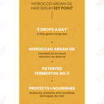 La esencia de este sérum es el aceite de argán marroquí premium, reconocido por sus excepcionales propiedades. Con el doble de vitamina E que el aceite de oliva, este potente ingrediente proporciona hidratación y nutrición intensas. Una pequeña cantidad de esta fórmula no pegajosa suaviza el cabello encrespado y enredado, promoviendo su elasticidad y brillo, a la vez que ofrece una hidratación duradera. El sérum no solo realza la belleza natural del cabello, sino que también protege el cuero cabelludo, asegurando una base saludable para su crecimiento. Su lujoso aroma floral afrutado con almizcle deja el cabello con una fragancia deliciosa, añadiendo un toque de elegancia a tu rutina de cuidado capilar.
