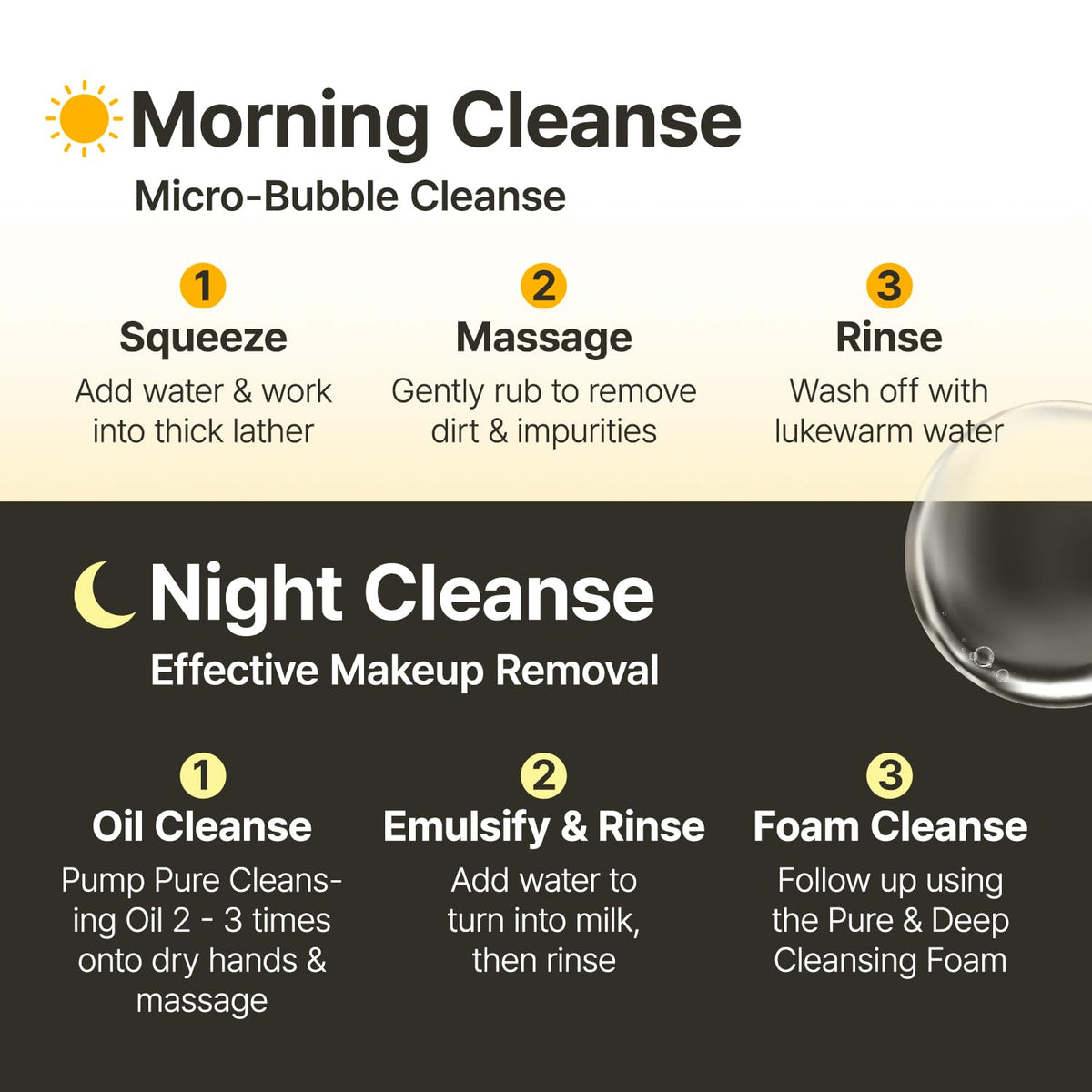Ma:nyo's Pure & Deep Cleansing Duo, (Pure Cleansing Oil 200ml and Pure & Deep Cleansing Foam 200ml) a dynamic duo designed to purify and revitalize your skin with every use.