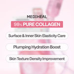 Experience a firmer, plumper, and more hydrated complexion with MEDIHEAL’s Collagen Essential Mask. Infused with 98% pure collagen, this mask is designed to target both surface and inner skin layers, helping to visibly improve elasticity, density, and firmness with just one application. Its triple-refined, ultra-fine 300-dalton collagen penetrates deep into the skin, with particles 1/35,000 the size of pores for maximum absorption and results.