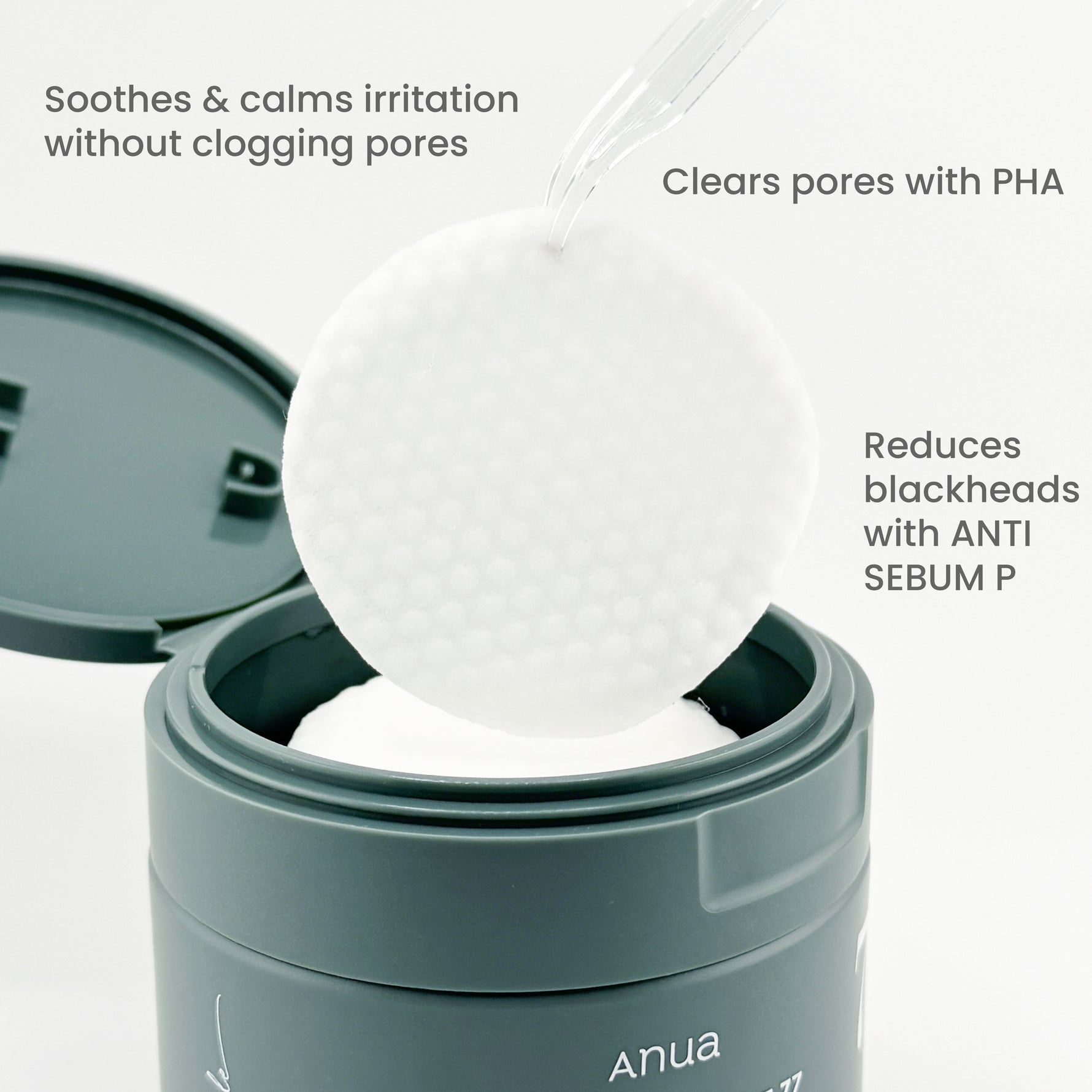 Su innovadora fórmula incorpora ingredientes antisebo que actúan eficazmente para reducir el exceso de producción de sebo y minimizar el tamaño de los poros. Adiós a los brillos indeseados y a los poros visibles: solo una tez más suave y refinada. Anua entiende que cada tipo de piel es único, y por eso sus Clear Pads están meticulosamente elaboradas sin sustancias irritantes. Independientemente de tu tipo de piel, estas almohadillas dejarán tu piel con una sensación de claridad, una tez uniforme y una hidratación profunda.