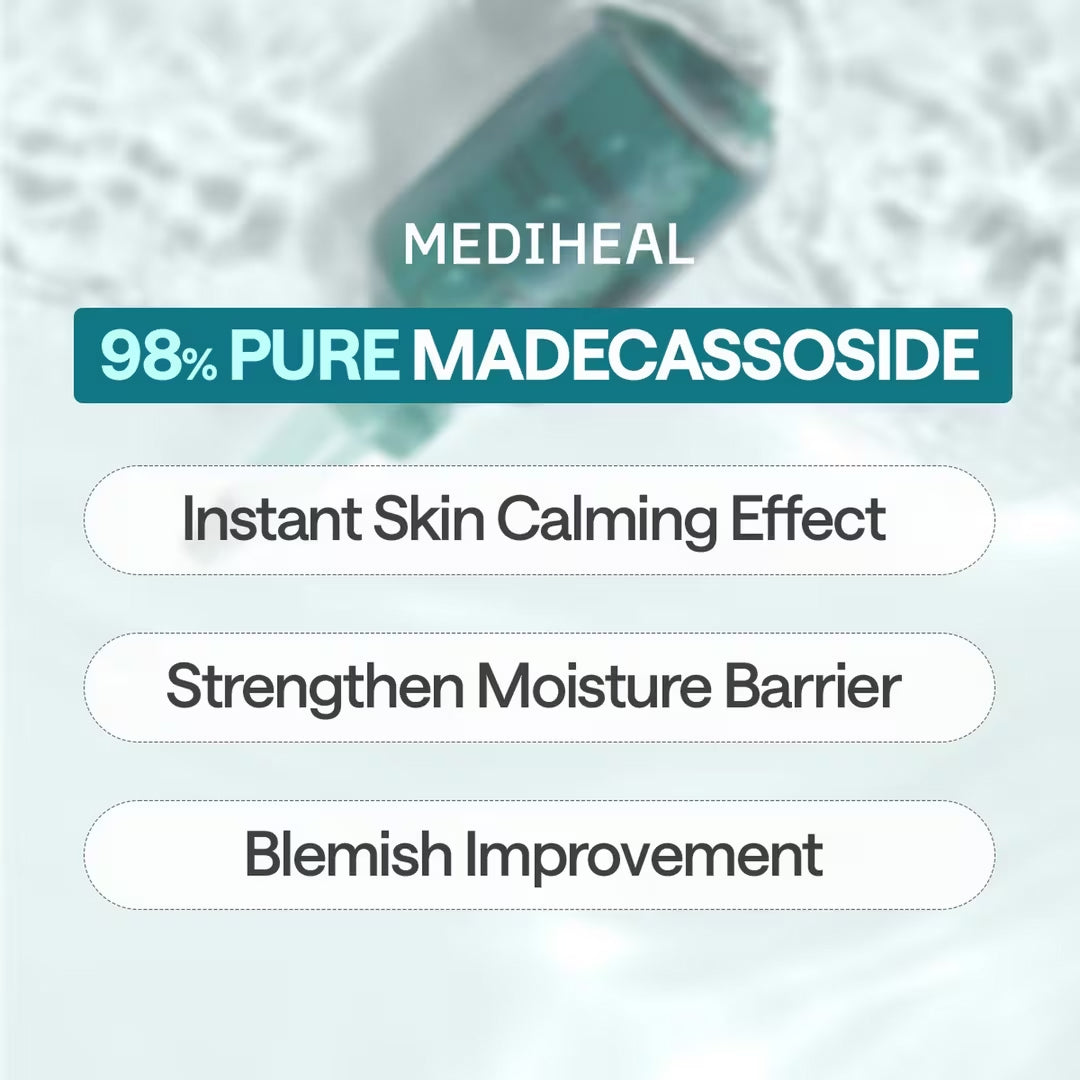Precio unitario / porSoothe irritation, repair your skin barrier, and restore clarity with MEDIHEAL’s Madecassoside Essential Mask. Infused with 98% pure madecassoside and powered by a 198-hour cold decoction process, this mask delivers concentrated calming care to blemish-prone and sensitive skin. With just one sheet, it works to reduce redness, cool irritation, and promote stronger, healthier-looking skin. Each mask is enriched with a blend of niacinamide, sodium hyaluronate, and cerapanthenol, offering multiple skin benefits: visibly minimizing pores, improving hydration levels, and reinforcing the skin’s natural barrier. Artificial fragrance-free and dermatologist-tested, this mask ensures a gentle yet effective treatment that suits even delicate skin types.