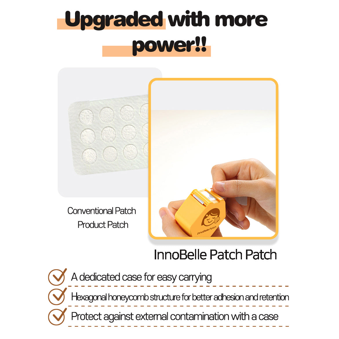 The InnoBelle Patch is also packaged in a dedicated compact case that keeps patches clean, organized, and ready to use anytime. Its hypoallergenic design makes it suitable for sensitive skin, while the strong adhesion helps the patch stay in place throughout daily activities. Whether at home or on the go, this patch offers a simple and hygienic way to manage breakouts with confidence and convenience.
