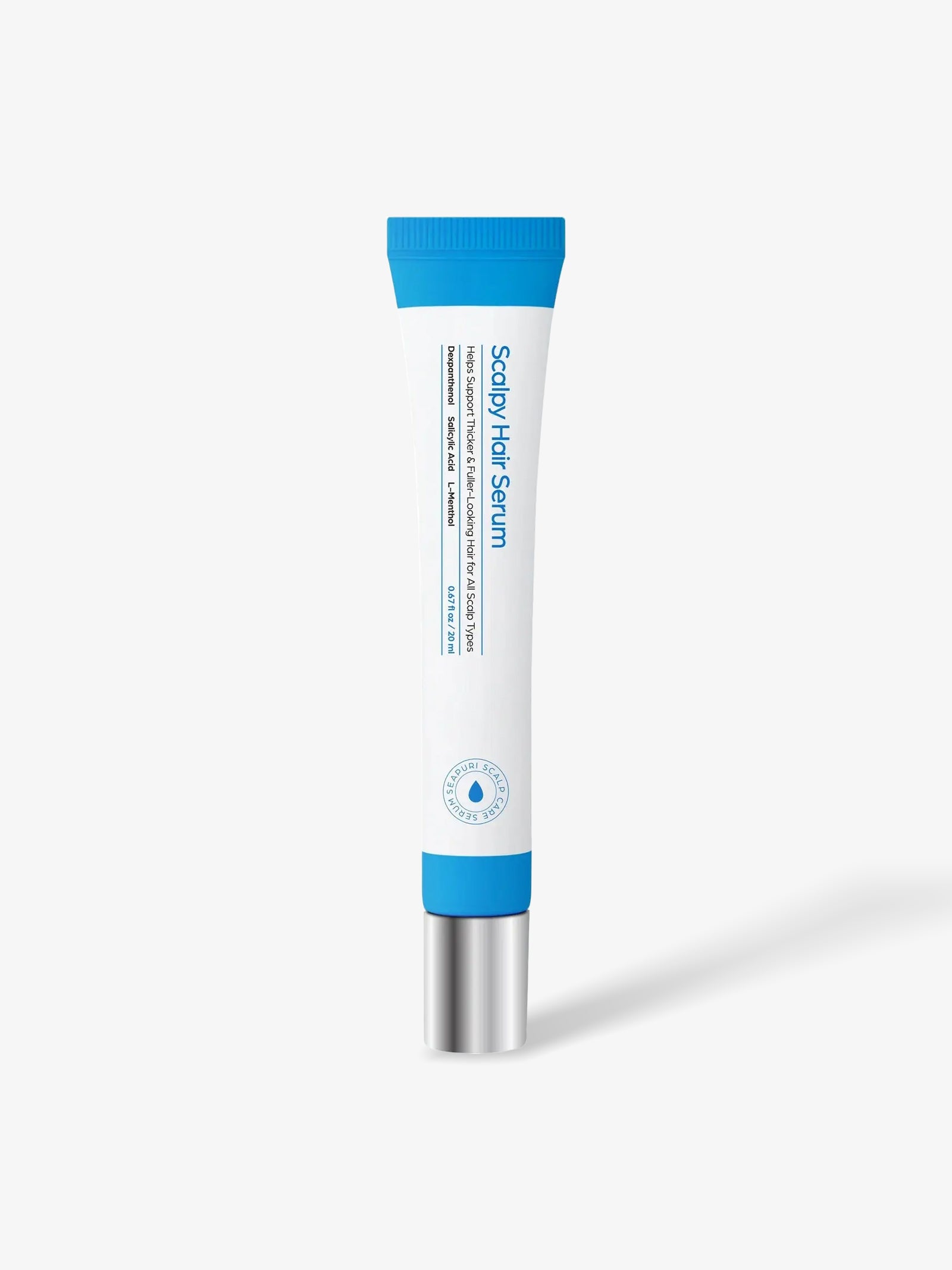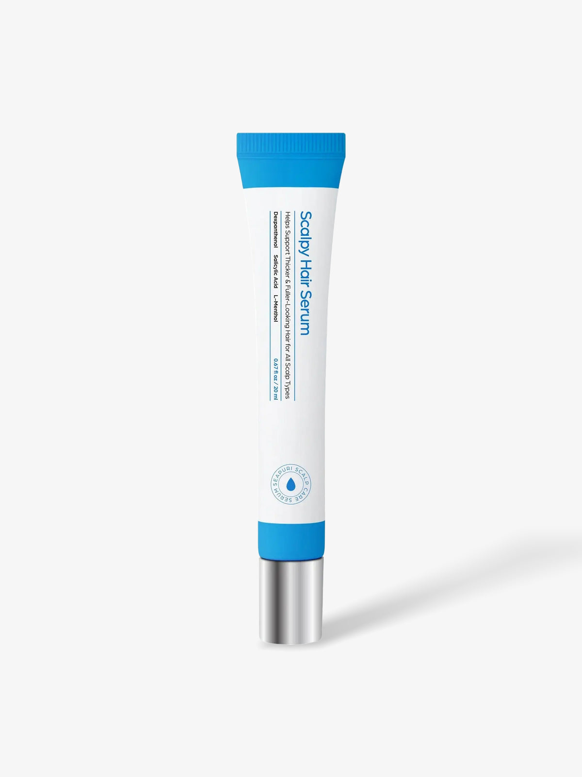 Seapuri's Scalpy Hair Growth Serum is designed to support hair growth while addressing common scalp concerns such as thinning, itching, dandruff, and buildup. By keeping the scalp clean, balanced, and comfortable, it helps create an optimal environment for healthier, fuller looking hair without leaving behind a greasy or heavy residue. Its lightweight, fast absorbing texture makes it ideal for daily use, even for those with fine or oily hair. Formulated with salicylic acid, L-menthol, and dexpanthenol, this serum gently exfoliates dead skin and dandruff, cools and soothes irritation, and strengthens hair follicles from the root. The triple metal ball applicator delivers the serum directly to the scalp, enhancing cooling, improving absorption, and providing a refreshing massage that helps activate the formula for maximum effectiveness.