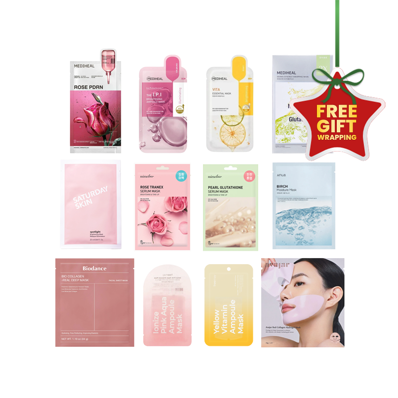 Each set of sheet masks arrives in a festive Christmas favor bag, ready to gift at no extra cost.