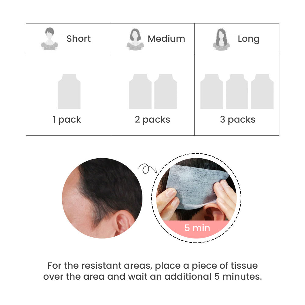 <br>4. Leave in for 5 minutes. For resistant grays, cover area with tissue and leave in for an additional 10~15 minutes.