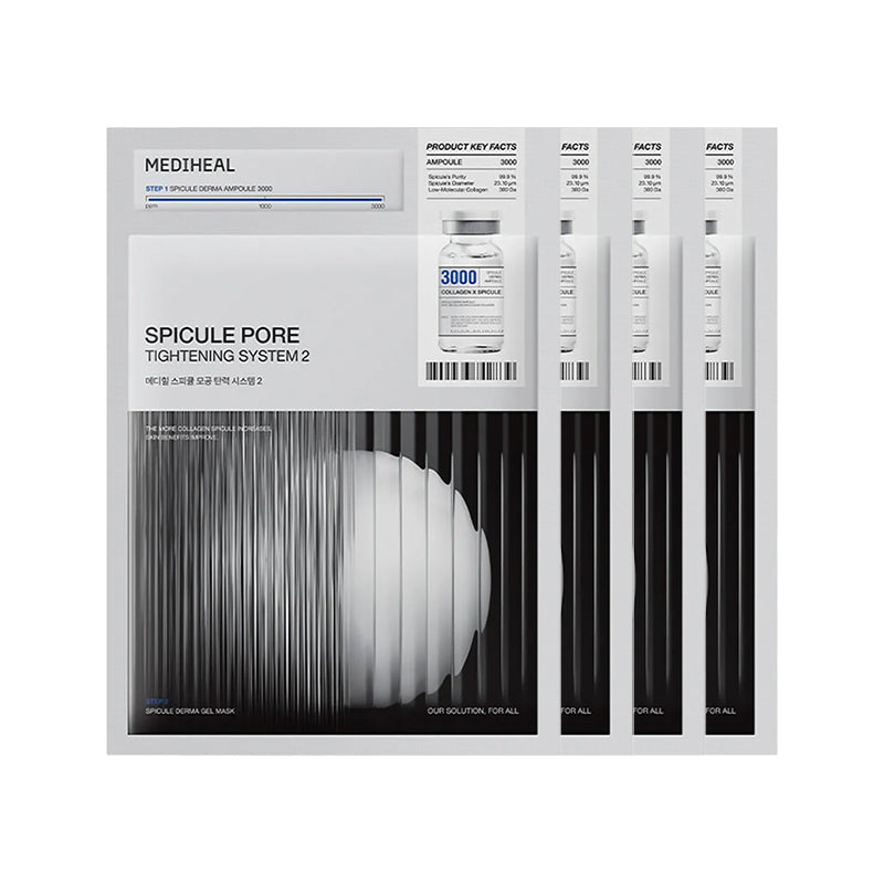 MEDIHEAL 推出 Spicule Pore Tightening System 2,一款更深入的毛孔紧致方案。Spicule Pore Tightening System 2 是一款两步胶原蛋白护理,旨在增强肌肤弹性,并最大程度地减少毛孔粗大。这款升级版系统采用高浓度 3,000 ppm 胶原蛋白针状安瓿,搭配胶原蛋白凝胶面膜,可最大程度促进吸收,带来深层持久的紧致功效。99.99% 纯度的胶原蛋白针状成分可收细松弛毛孔,抚平不均匀的肌肤纹理,恢复肌肤弹性;低分子胶原蛋白成分则可深层补水,提升肌肤弹性。这款先进的毛孔紧致系统经临床测试(已完成德国皮肤测试),有助于显著改善肌肤紧致度、光滑度和细腻度。