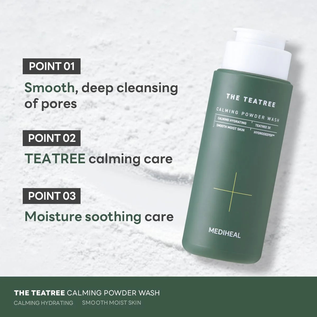 MEDIHEAL 推出茶树舒缓洁面粉,这是一款每日使用的酶洁面乳,可产生丰富细腻的泡沫,带来深层而温和的清洁效果。它旨在净化肌肤,去除死皮细胞、多余皮脂和黑头,同时舒缓粗糙凹凸的肌肤。使用方便,只需将约一茶匙洁面粉倒在掌心,用温水揉搓起泡,然后轻轻清洁肌肤即可。这款配方蕴含 MEDIHEAL 独有的茶树复合物,具有三重舒缓和净化功效。茶树 1X 结合了茶树提取物和茶树叶油,可提供基础舒缓护理;茶树 2X 则通过专有的生物群落茶树成分增强了这些功效。为了进一步提升功效,茶树 3X 采用了茶树叶油中最有效成分的浓缩提取物,可最大程度地发挥镇静和净化功效。