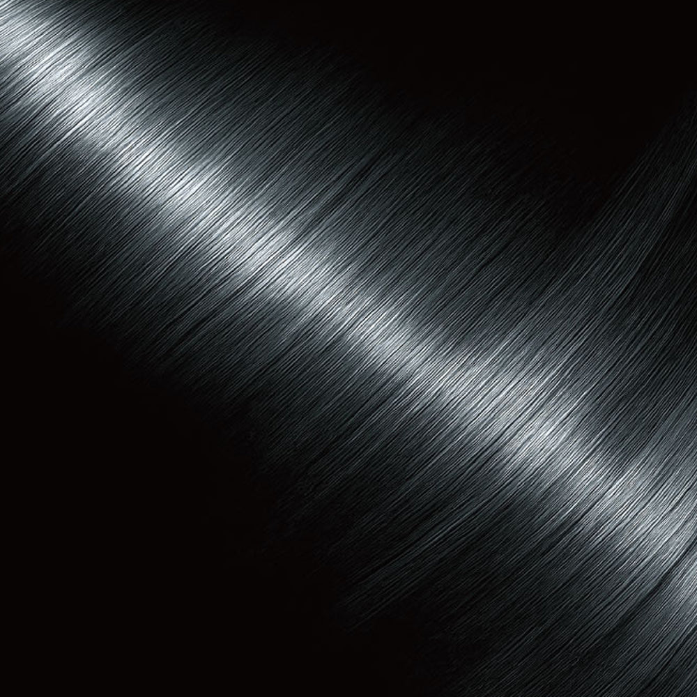 A modern, cool black with strong pigment and cleaner lift potential for future color changes