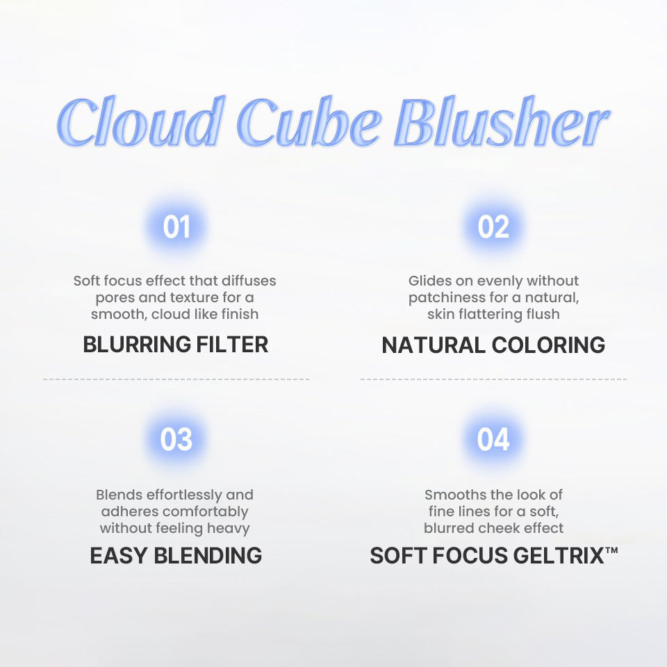 The MAKEheal Cloud Cube Blusher delivers a soft focus flush with a unique T.T.T design that makes application effortless and fun. Twist to dispense, tap to control, and touch to blend. The creamy formula melts into the skin for a naturally blurred, cloud like finish that never looks heavy or patchy. Designed with Soft Focus Geltrix, this blusher smooths the look of pores and fine lines while gliding on evenly for a seamless wash of color. The lightweight texture blends easily and builds beautifully, allowing you to customize your glow from sheer to softly defined.
