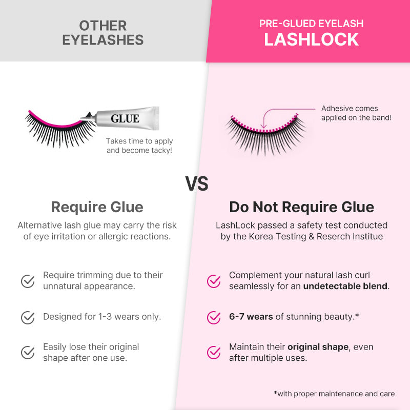 LashLock 一触式预粘睫毛经过精心制作,可与您的自然卷翘睫毛无缝衔接,打造完美无瑕、难以察觉的融合效果。这些预粘睫毛采用背胶设计,使用起来非常便捷。只需将其按压在睫毛线上,即可瞬间打造持久迷人的妆容。然而,便捷并不意味着质量的妥协。这些睫毛经过精心设计,即使多次使用也能保持原有的造型,保证6-7次佩戴仍能保持惊艳。这些睫毛具有防水效果,并经过24小时严格粘合测试,确保持久优雅。LashLock 始终将安全性和舒适性放在首位,对这些睫毛进行了全面的低模拟测试,以满足最高的质量和可靠性标准。