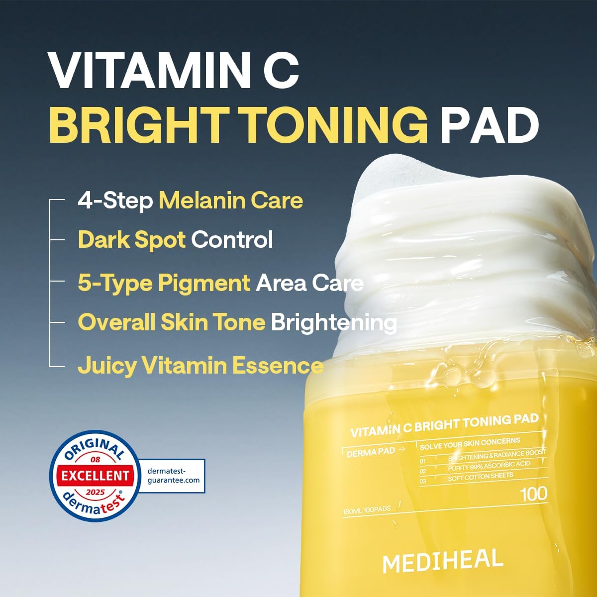 Brightening toner pads with sea buckthorn and vitamins to even skin tone, fade pigmentation, and boost radiance