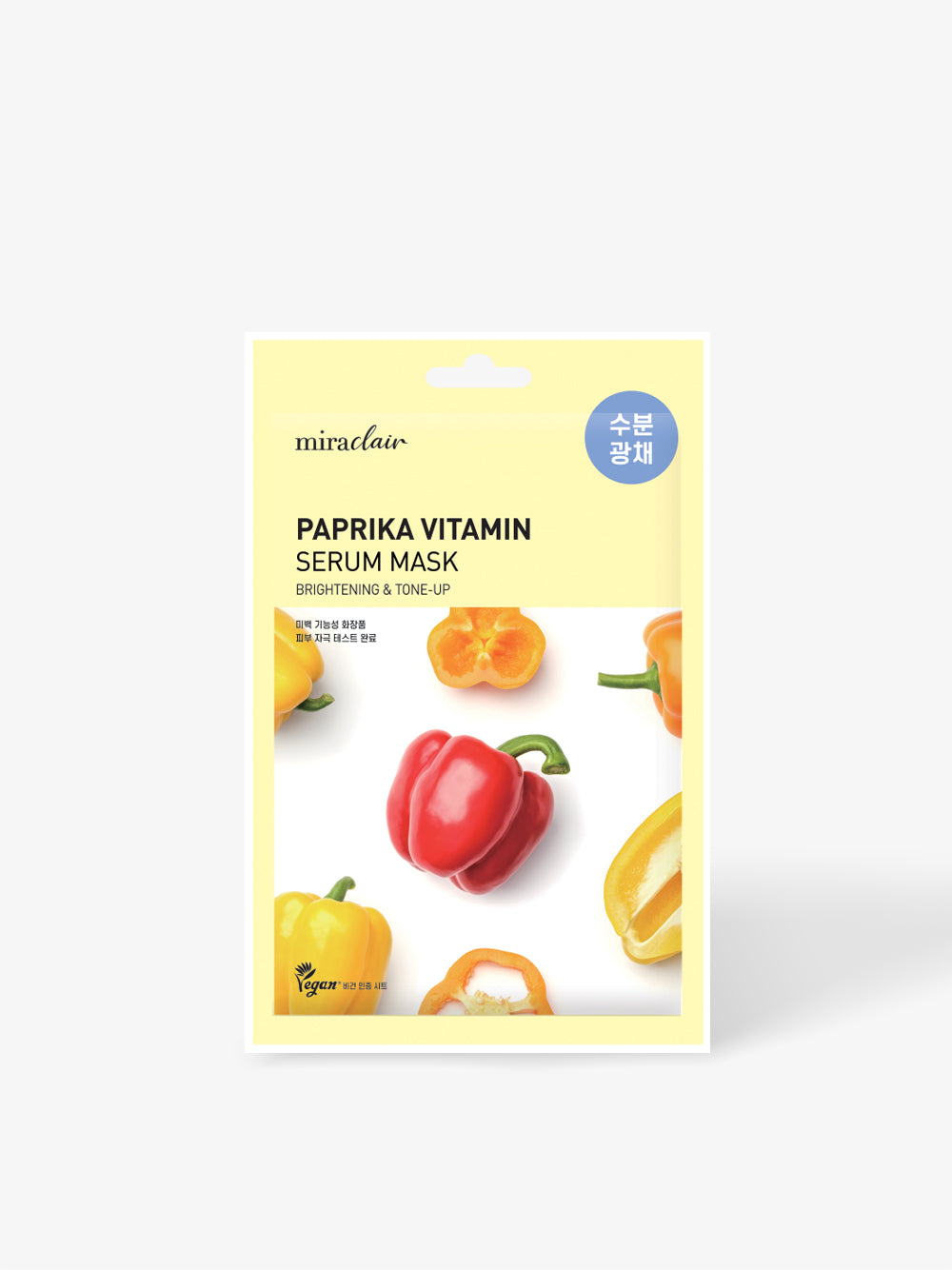 Miraclair 辣椒维生素精华面膜蕴含辣椒提取物,富含维生素 C、E 和 A。这款面膜能够增强肌肤弹性,保持肌肤平衡。维生素 C 能够提亮肤色,令肌肤洁净透亮,修正紫外线引起的肤色不均,并刺激胶原蛋白合成,增强肌肤保护。泛醇成分增强保湿功效,确保深层补水。这款面膜采用纯植物配方,采用优质面膜纸,紧密贴合肌肤,为肌肤提供必需营养成分,令肌肤焕发清爽光泽。