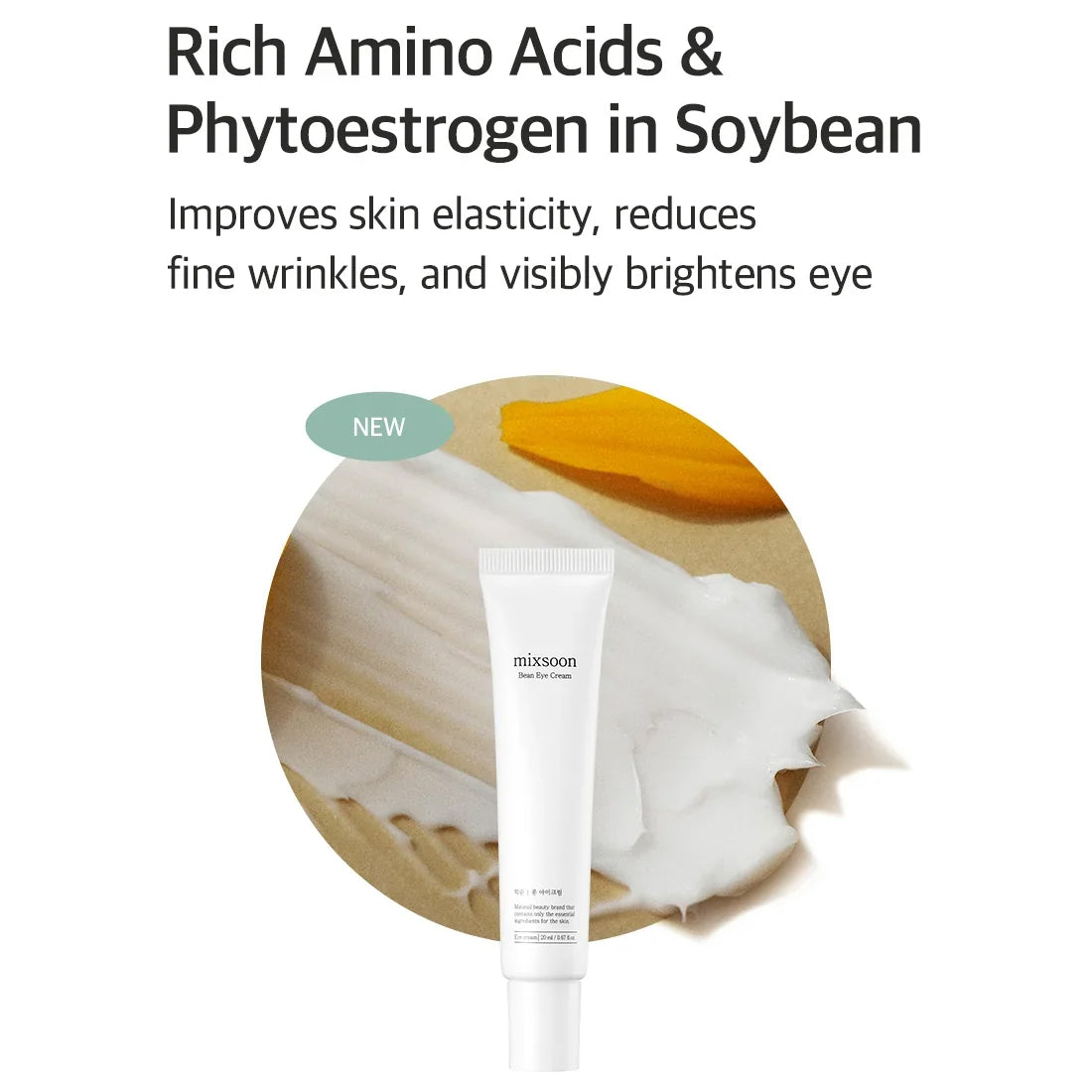 Mixsoon Bean 眼霜专为深层补水滋养肌肤而设计,不留任何黏腻残留。蕴含大豆氨基酸和植物雌激素,这款眼霜能够有效增强肌肤弹性,淡化细纹,提亮娇嫩眼周肌肤。体验 Mixsoon Bean 眼霜轻盈透明的质地,持久滋养肌肤。这款眼霜蕴含发酵豆 BIOME5X™ 和木槿愈伤组织提取物,采用独特配方,有效解决多种肌肤问题。BIOME5X™ 是一种获得专利的皮肤微生物组成分,采用大豆和四种精心挑选的本地食材(大米、薏仁、土豆和人参)经过特殊发酵工艺制成。这些成分协同作用,增强大豆的功效,令肌肤更健康、更容光焕发。同时,木槿愈伤组织提取物可以对抗自由基并刺激胶原蛋白的产生,为您的皮肤提供强大的抗衰老护理。