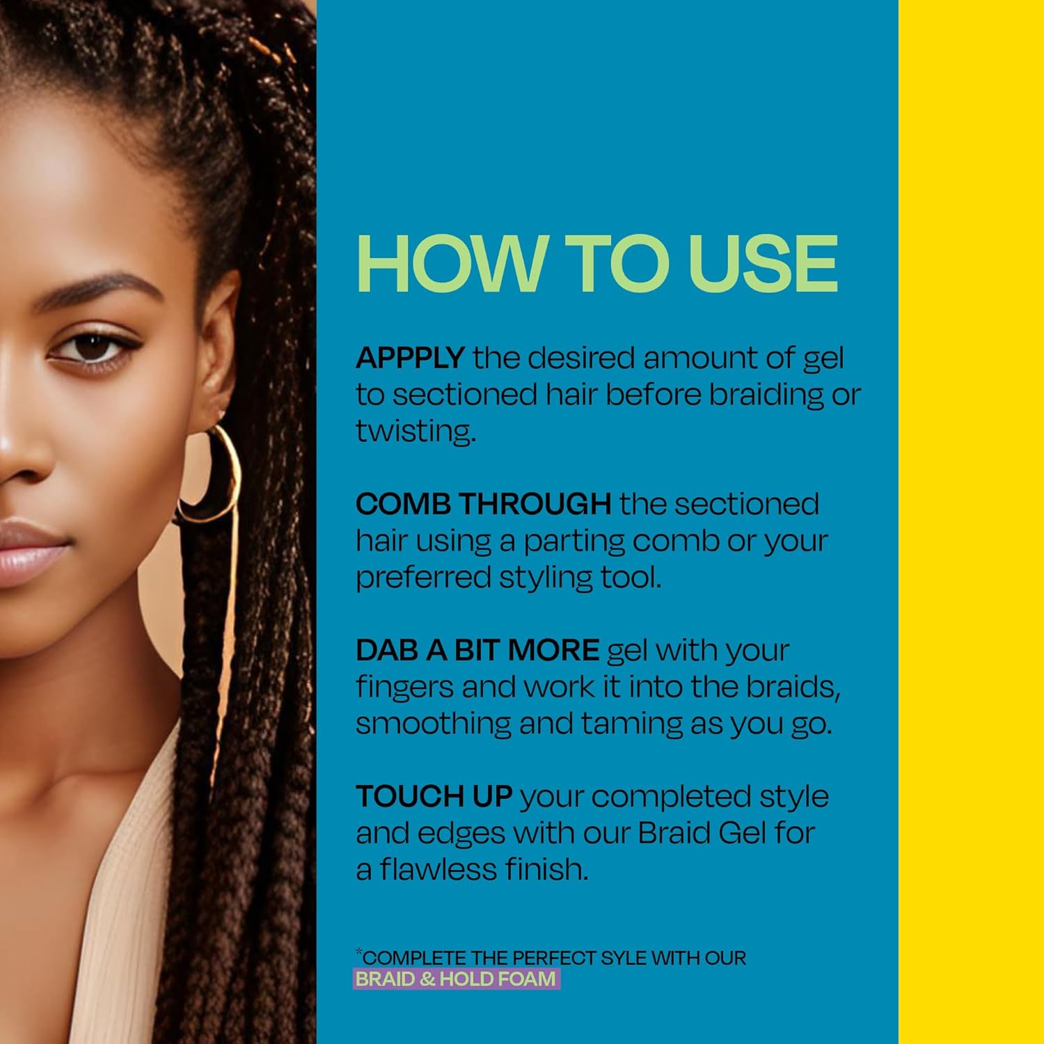1. 在编织或扭转之前,将所需量的编织凝胶涂抹在分段的头发上。