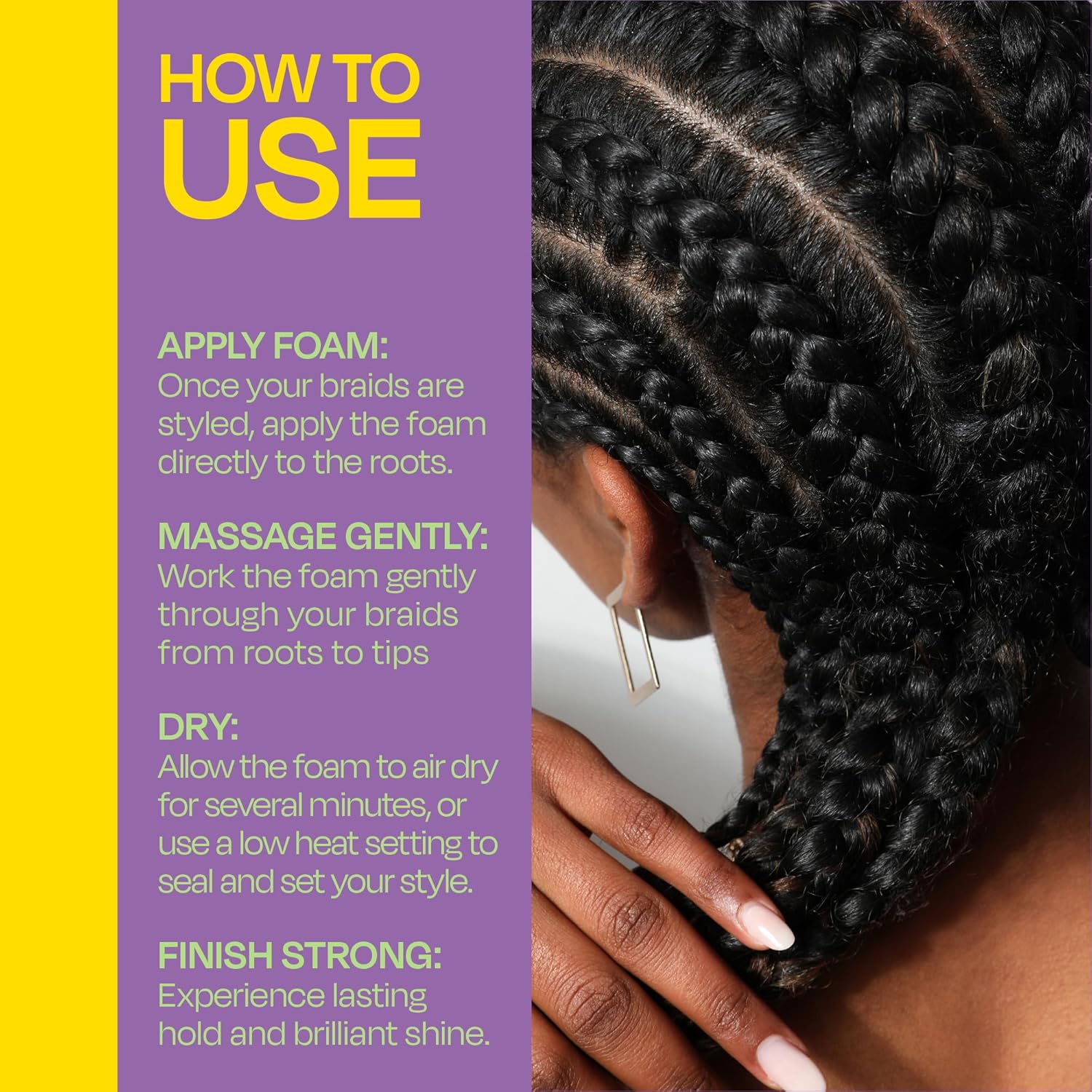 1. 编好辫子后,将定型泡沫直接涂抹在发根上。