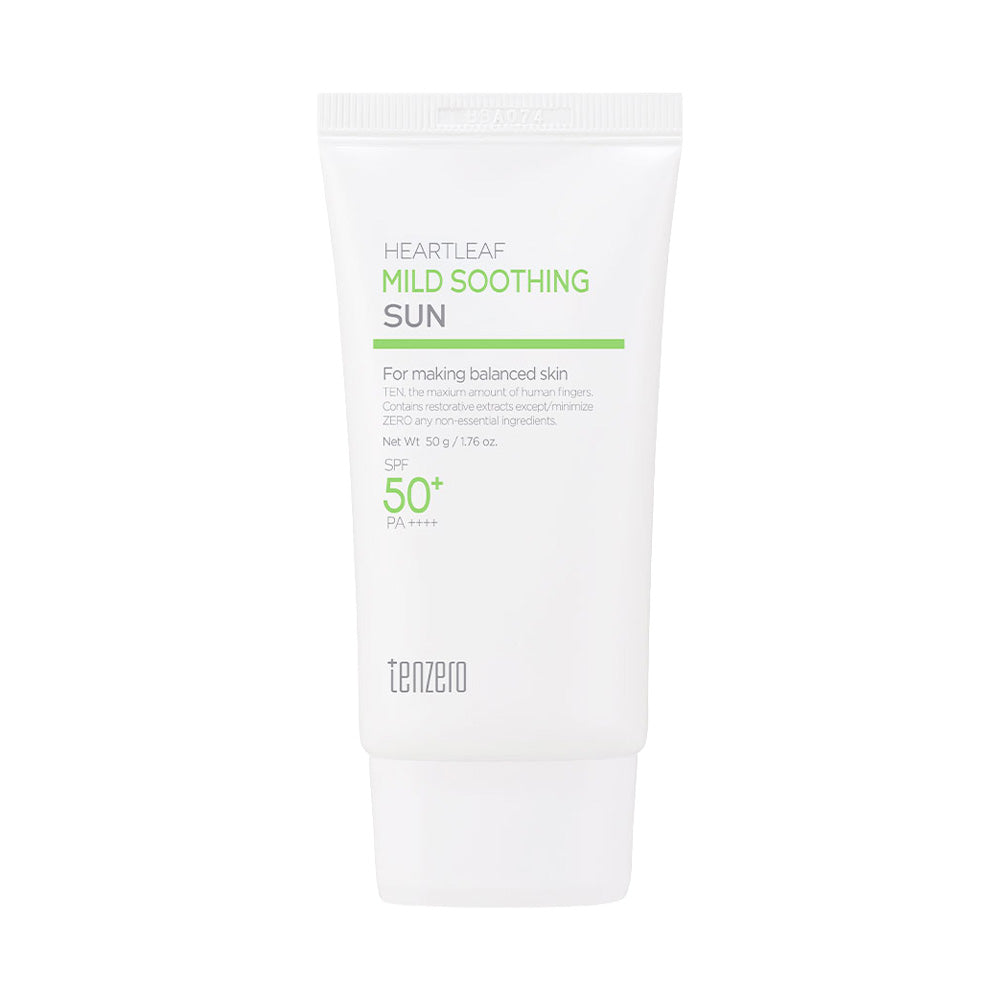 Protect and calm your skin with Tenzero Heartleaf Mild Soothing Sun, a lightweight, triple functional sunscreen that defends against UV rays while brightening and improving the appearance of wrinkles. Formulated with a gentle blend of chemical and mineral filters, it offers powerful SPF 50+ PA++++ protection without leaving a white cast or greasy residue.