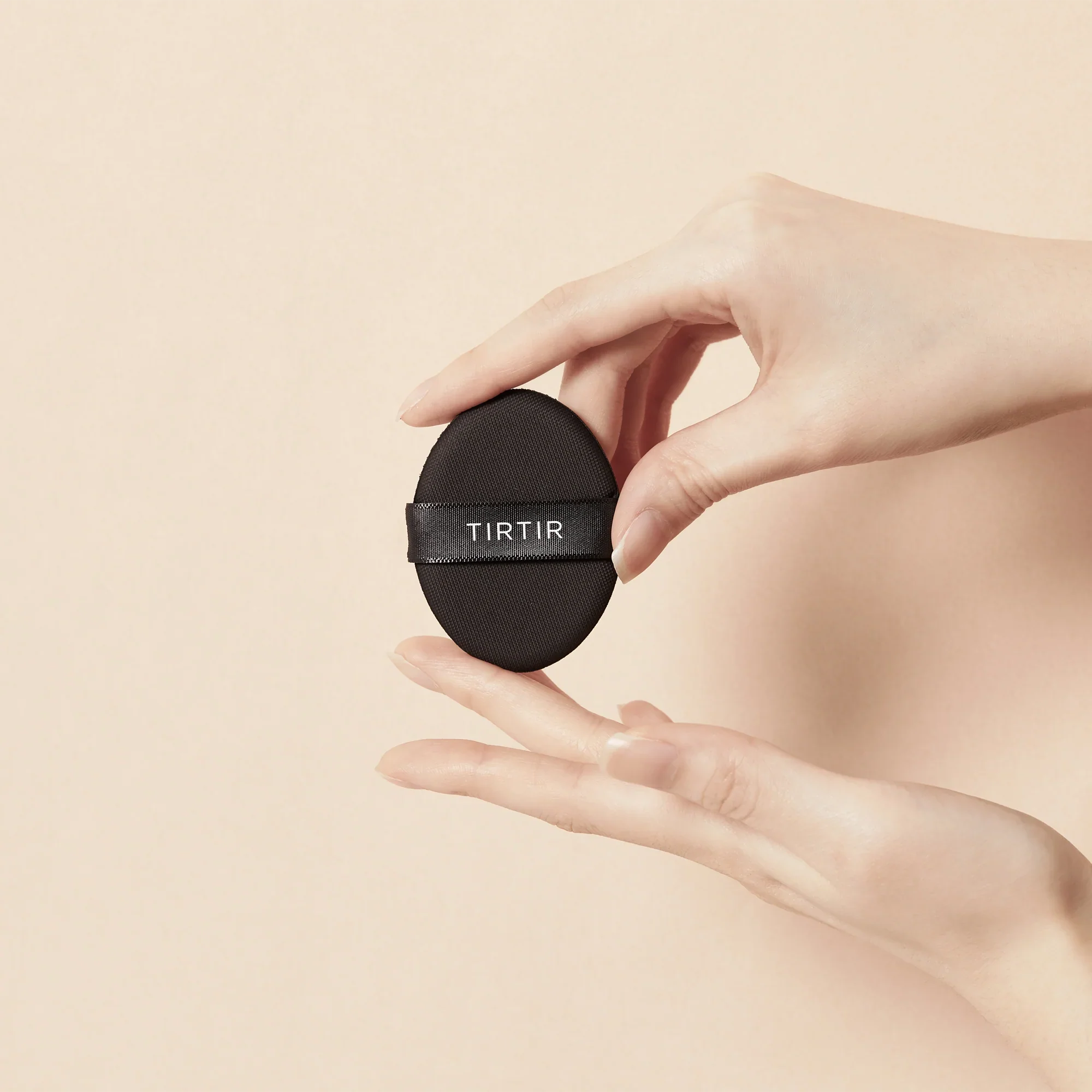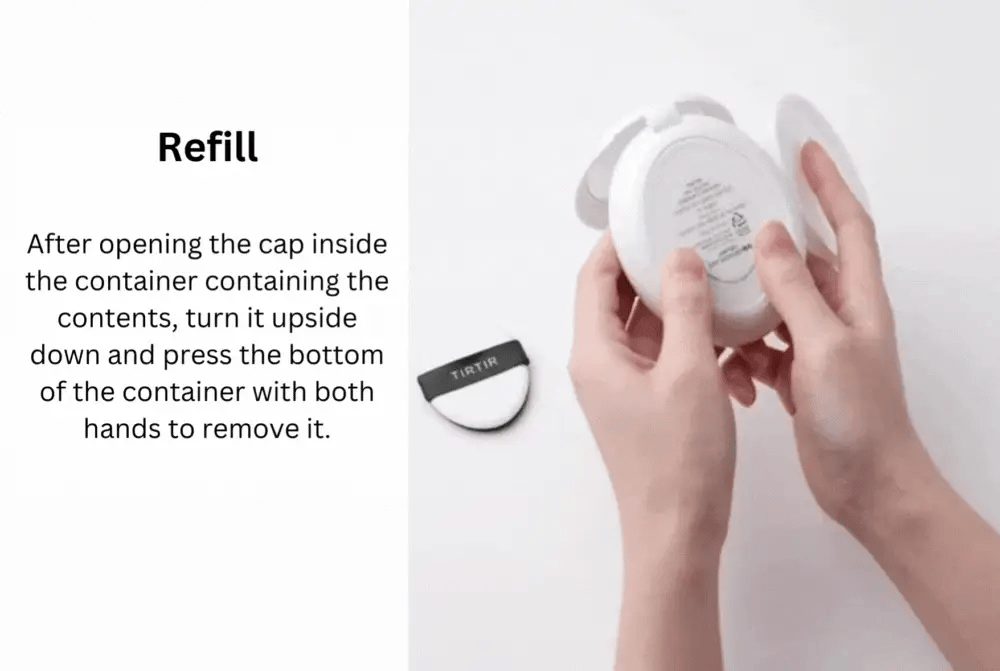 1. 涂抹基础护肤品和妆前乳(推荐)后,用两根手指握住粉扑,轻轻按压浸透粉底液的海绵。