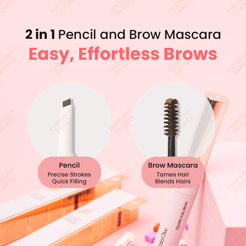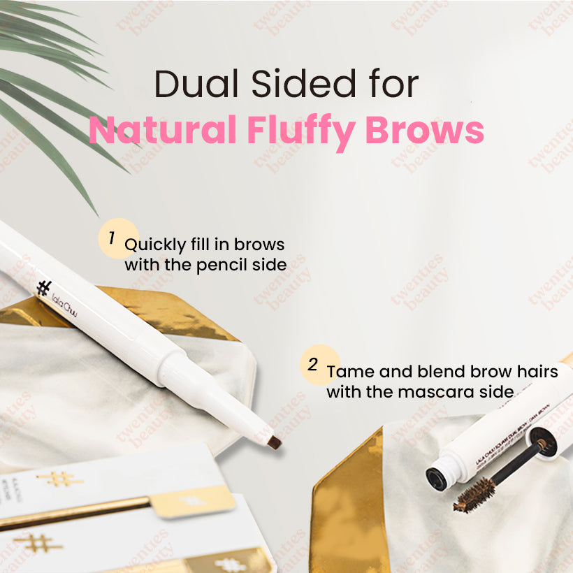 LalaChuu 的方形双头眉笔兼具眉笔的精准度和眉膏的定型力。这款二合一产品让您轻松一步,即可自然地填充眉毛,打造清晰的眉形。柔软亲肤的眉笔顺滑易上色,提升眉形清晰度;眉膏则能将眉笔牢牢固定,打造持久妆效,不会晕染或结块。它能抚平眉毛,使其与眉笔完美融合。抗油脂复合物速干,防止油脂晕染,确保您的眉毛全天保持清新亮泽。