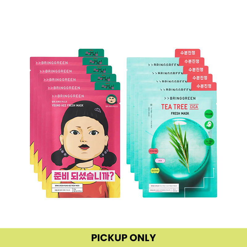 这款独家版 BRINGGREEN 茶树积雪草清新面膜采用Netflix 的 Squid Game品牌标识,是粉丝和护肤爱好者的首选。这款特别的 10 片装套装包含 5 片 Young Hee 清新面膜和 5 片茶树积雪草清新面膜,专为敏感、油性和干性肌肤提供针对性护理。